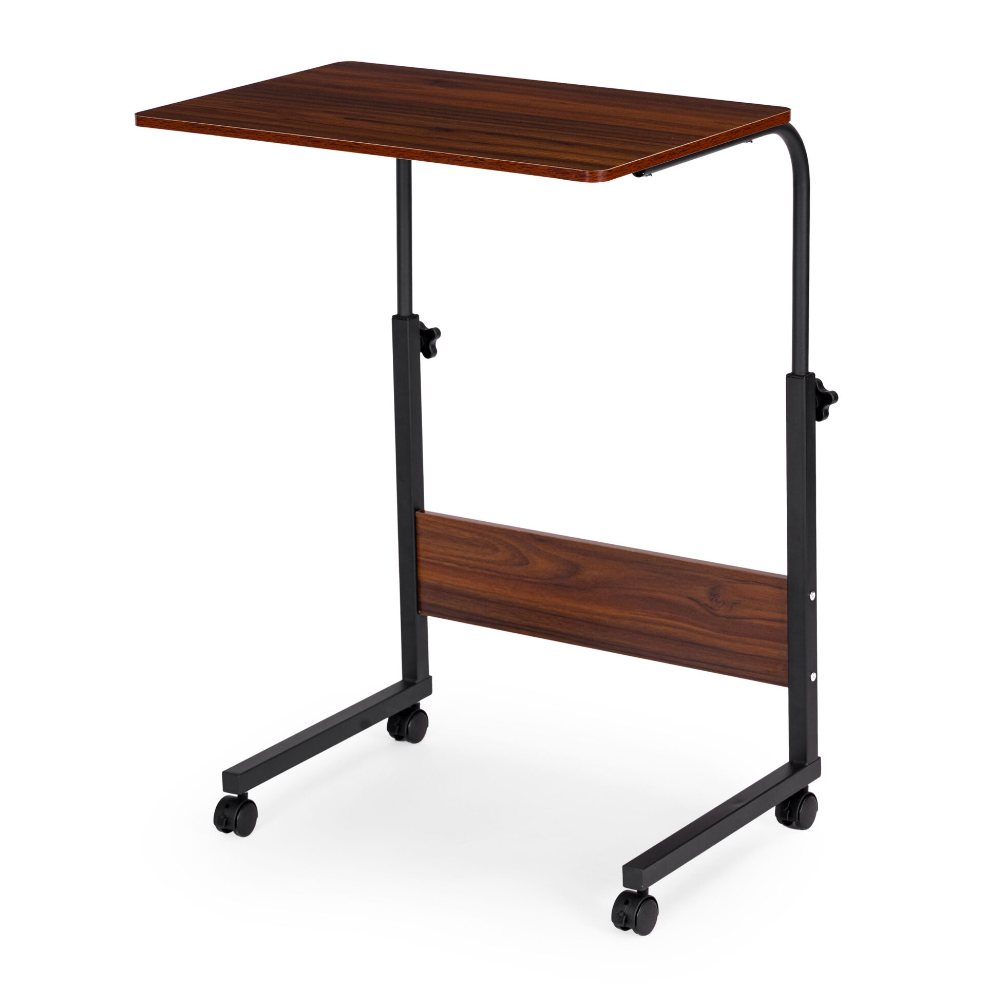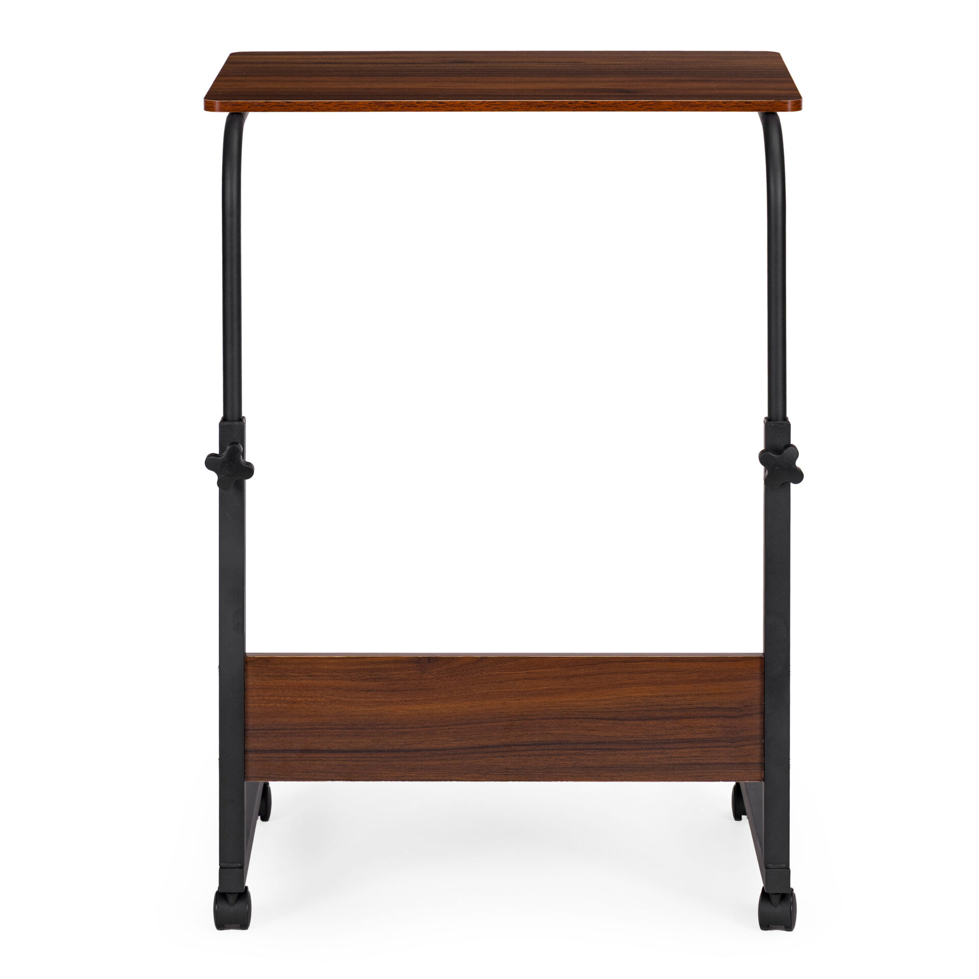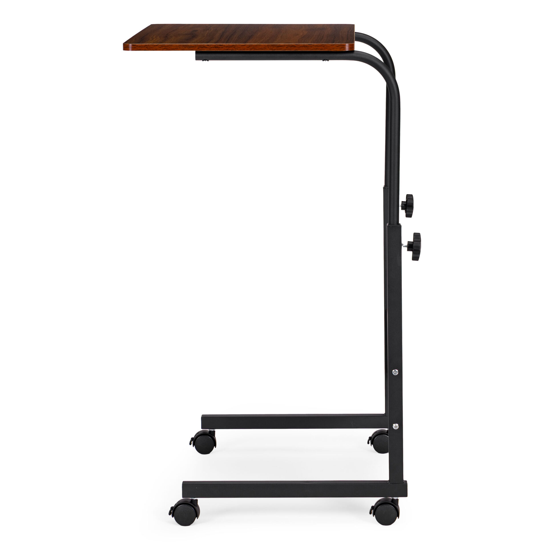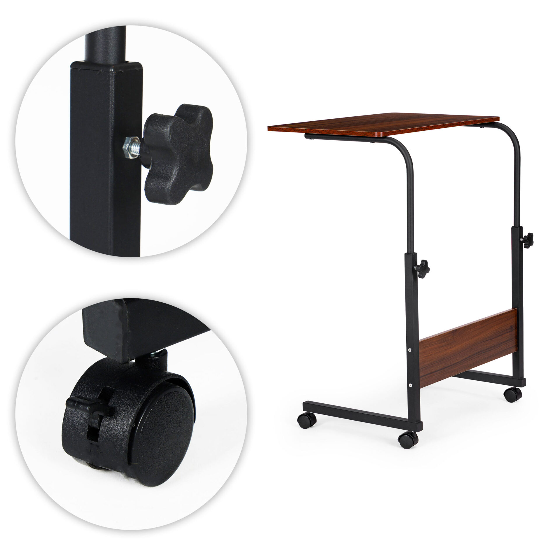 Mobilny stolik pod laptopa z regulacją wysokości (65,5-86 cm). Posiada kółka z blokadą, blat z płyty MDF i stalową konstrukcję. Idealny do pracy przy kanapie lub łóżku. Kolor ciemny brąz ModernHome.