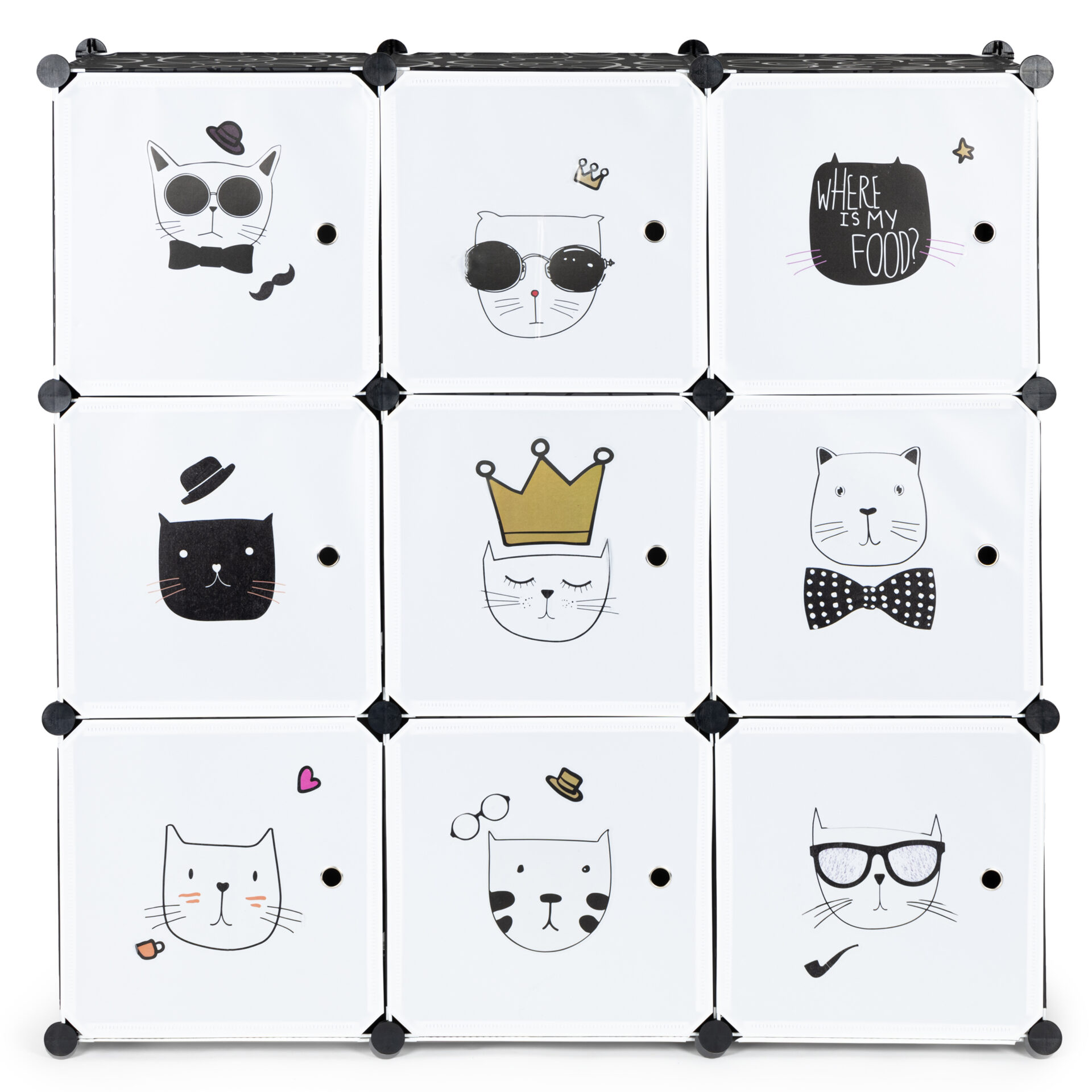 Uporządkuj królestwo swojego dziecka z modułową szafką od ModernHome. Składający się z 9 kolorowych modułów regał pozwala na dowolną aranżację przestrzeni. Każde drzwiczki ozdobione są radosną grafiką z motywem zwierzątek i bajkowych postaci, co zachęca maluchy do samodzielnego sprzątania swoich skarbów.