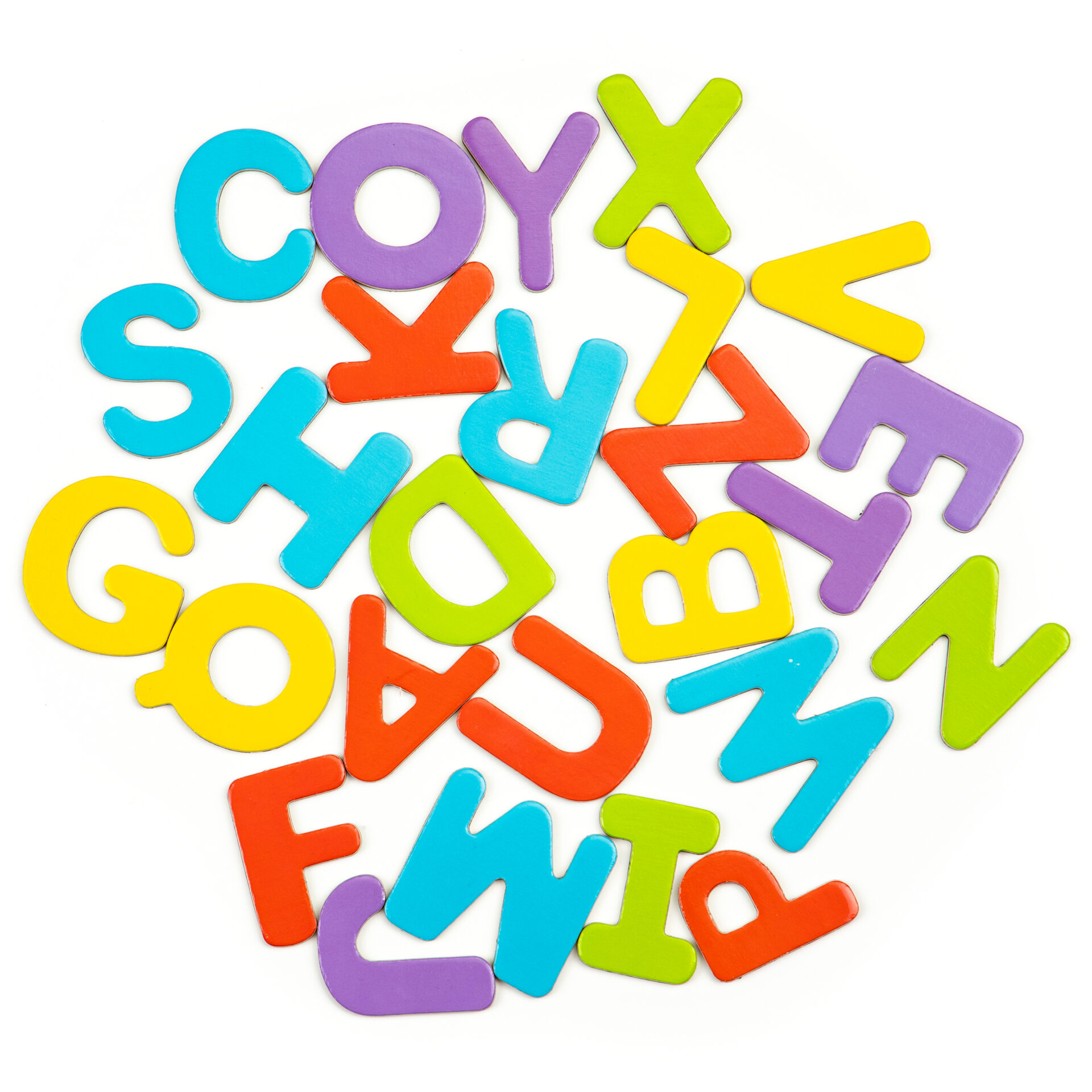 - Magnetyczne literki: Kolorowy zestaw alfabetu do przyczepiania na tablicę lub lodówkę.