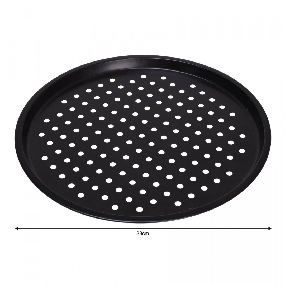 Perforowana blacha do pizzy 33 cm z powłoką nieprzywierającą. Dziurki zapewniają chrupiący spód. Idealna do domowej pizzy. Marka Klausberg.