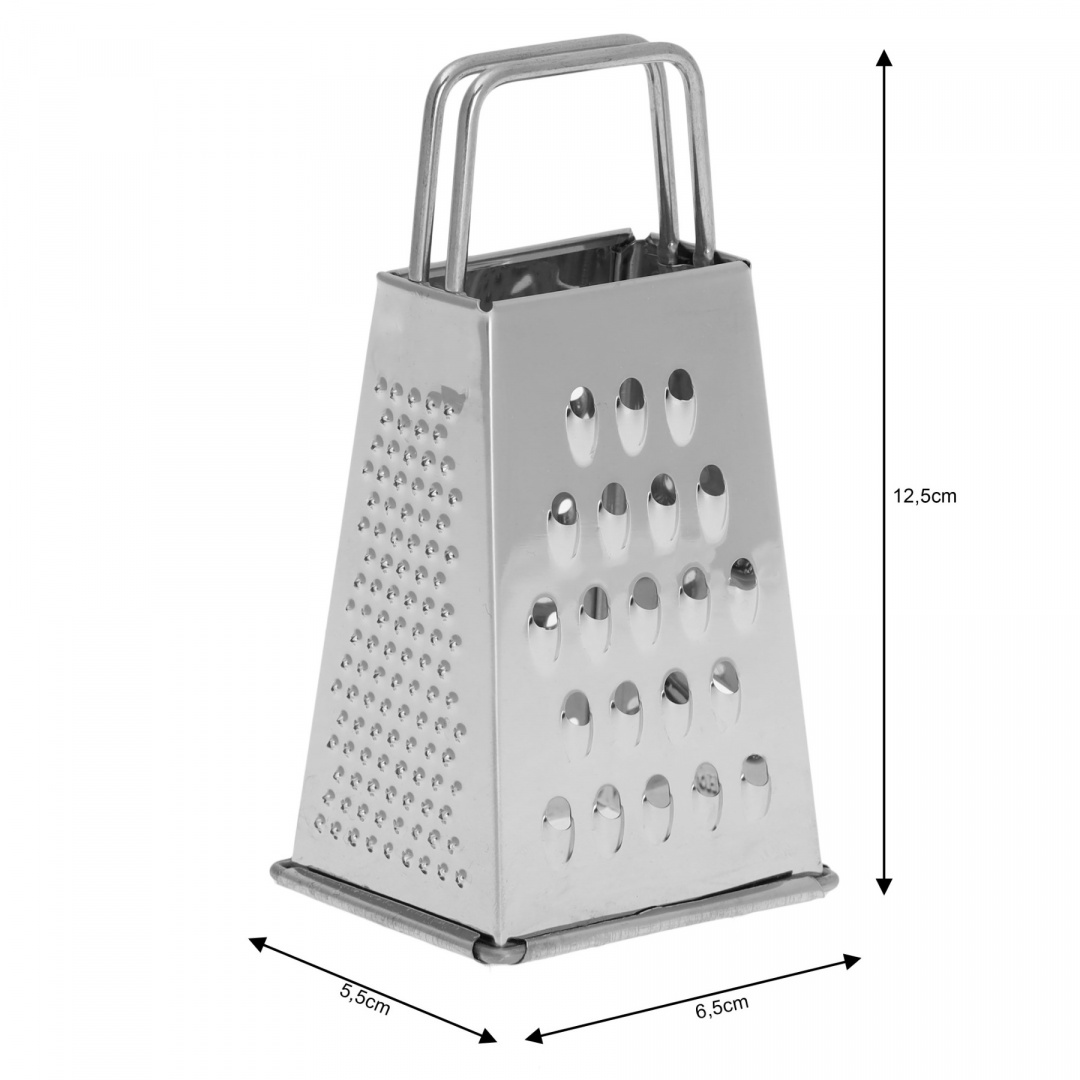 Kompromis między mini a standardem. Tarka Kinghoff KH-3182 o wysokości 12,8 cm to model „pośredni”, idealny do małych kuchni lub szybkiego starcia jednego jabłka czy kawałka sera. Jest poręczna, lekka i łatwa do umycia. Posiada 4 rodzaje ostrzy, więc jest w pełni funkcjonalna. Wykonana ze stali nierdzewnej z wygodnym uchwytem.