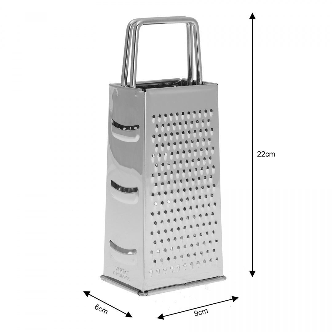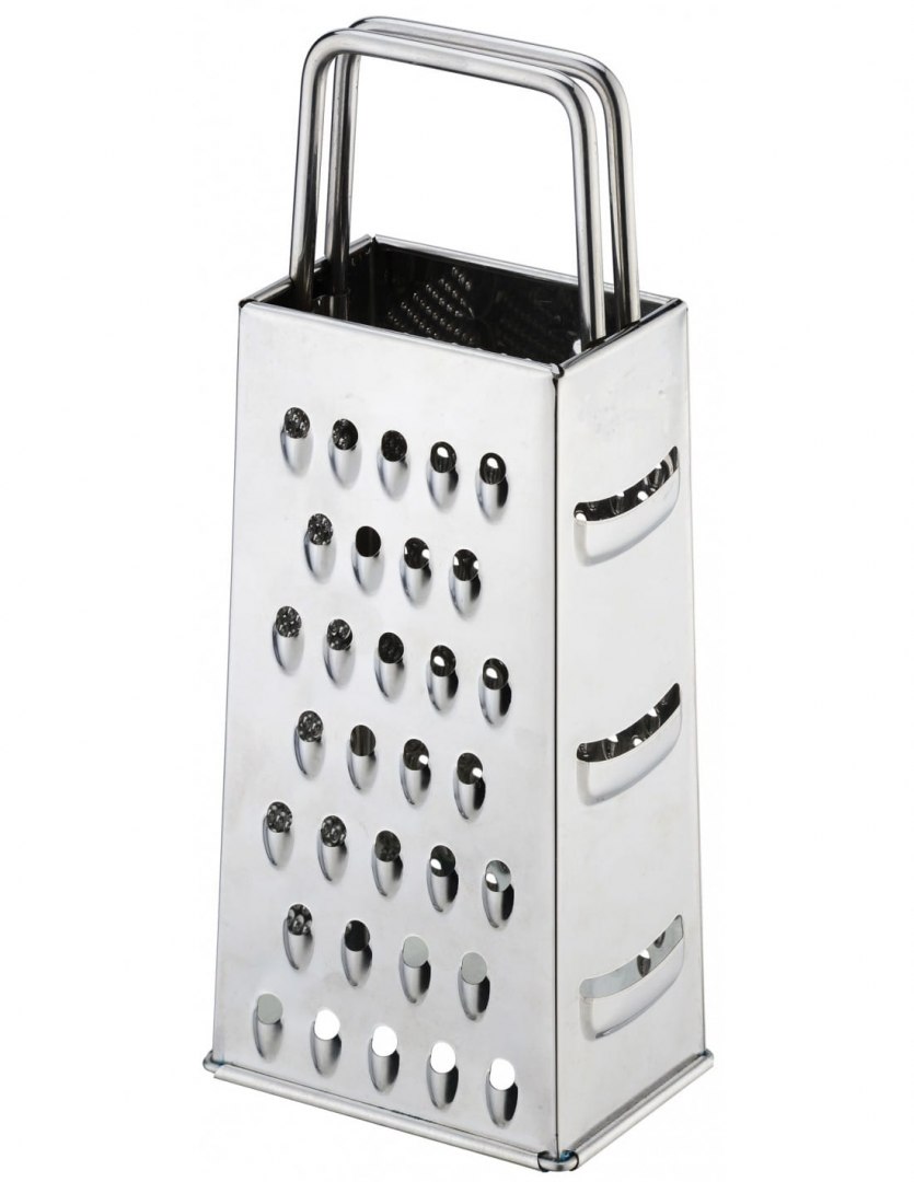 Średnia tarka 4-stronna (21 cm). Stal nierdzewna. Uniwersalna, do warzyw i sera. Solidne wykonanie. Marka Kinghoff.