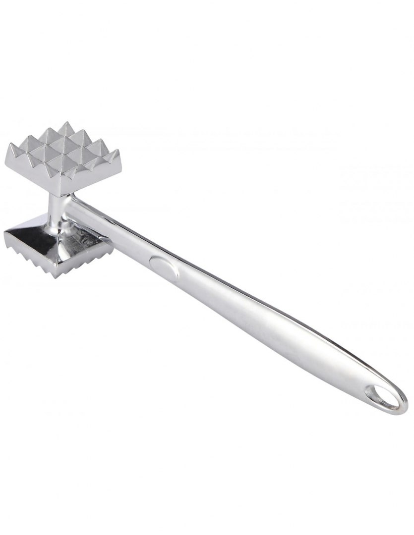 Ciężki, całkowicie stalowy tłuczek do mięsa (400g). Dwustronny. Higieniczny, można myć w zmywarce. Niezniszczalny. Marka Kinghoff.