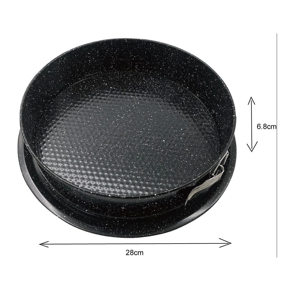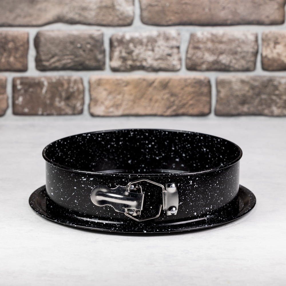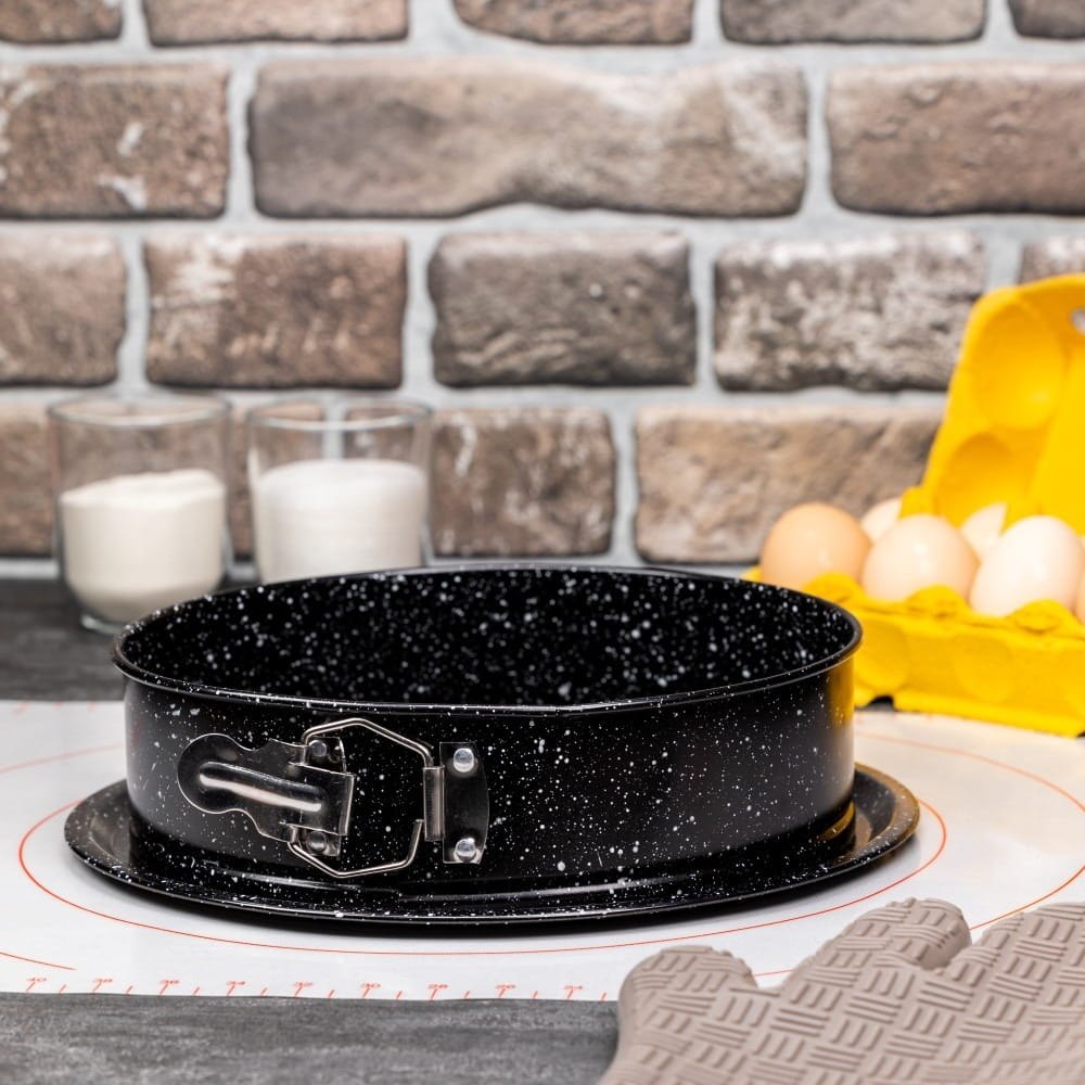 Duża tortownica rozpinana 28 cm. Powłoka marmurkowa, szczelna podstawa. Idealna na serniki i torty. Marka Kinghoff.