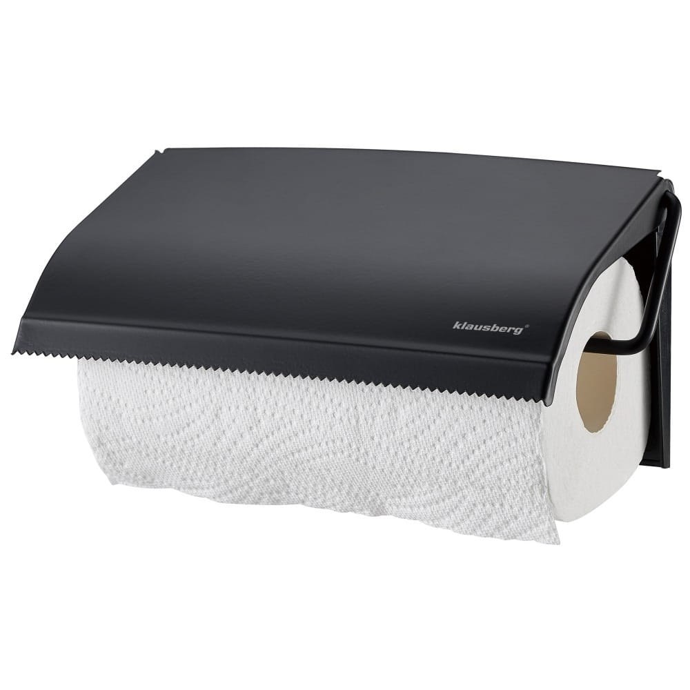 Czarny, matowy uchwyt na ręcznik papierowy do montażu na ścianie. Stal nierdzewna. Nowoczesny design. Oszczędność miejsca. Marka Klausberg.