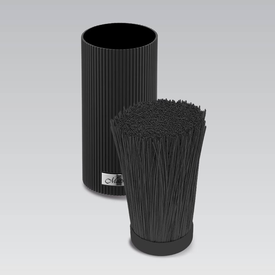 Czarny blok na noże z powłoką soft-touch. Uniwersalny wkład pręcikowy. Elegancki i kompaktowy. Marka Maestro.