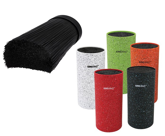 Uniwersalny blok na noże w oryginalny wzór (czarny nakrapiany). Powłoka silikonowa. Wkład pręcikowy. Marka Kinghoff.