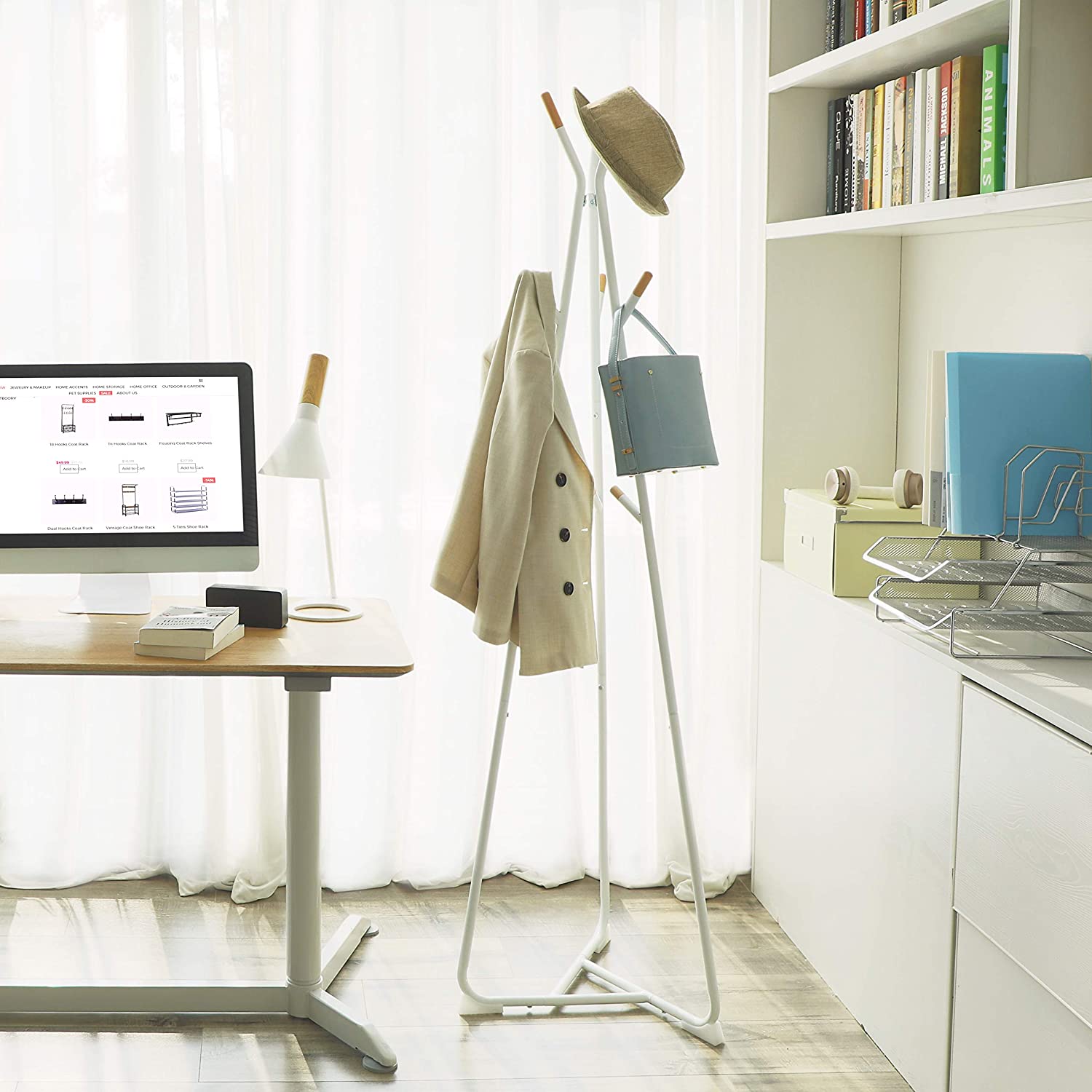 Mimo lekkiej konstrukcji (tylko 3 kg), wieszak jest bardzo stabilny dzięki szerokiej, trójkątnej podstawie. Posiada aż 9 haków rozmieszczonych na różnych wysokościach, co czyni go przyjaznym również dla dzieci – bez problemu same odwieszą swoje kurteczki.