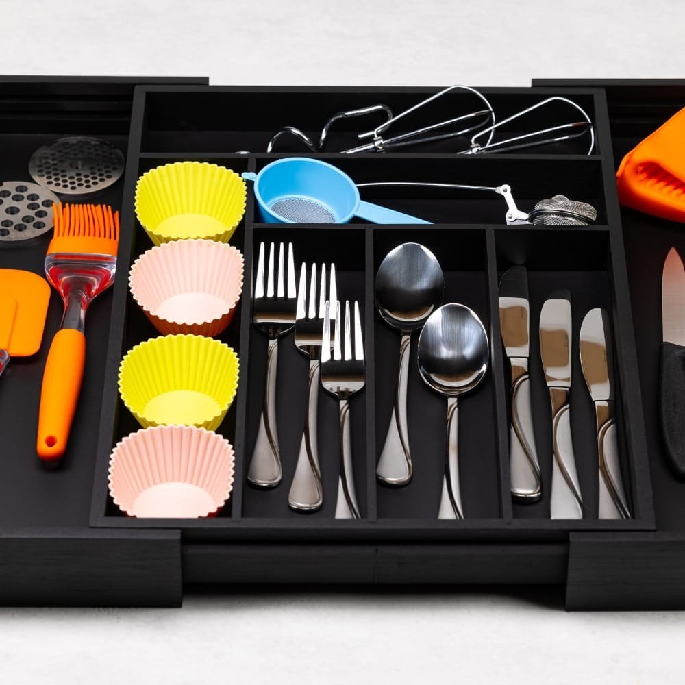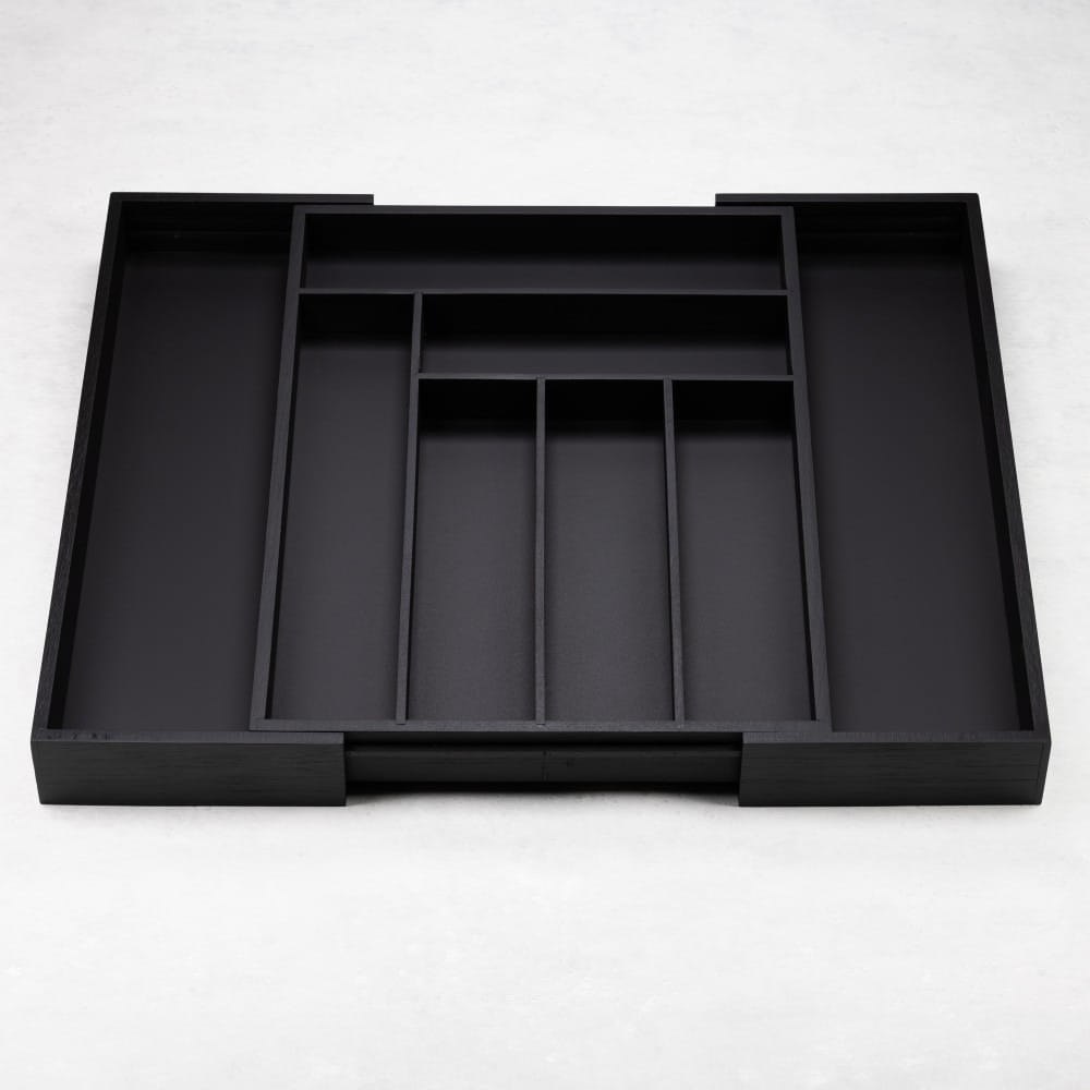 Czarny wkład bambusowy na sztućce. Rozsuwany (31-52 cm). 8 przegródek. Elegancki i nowoczesny. Marka Kinghoff.