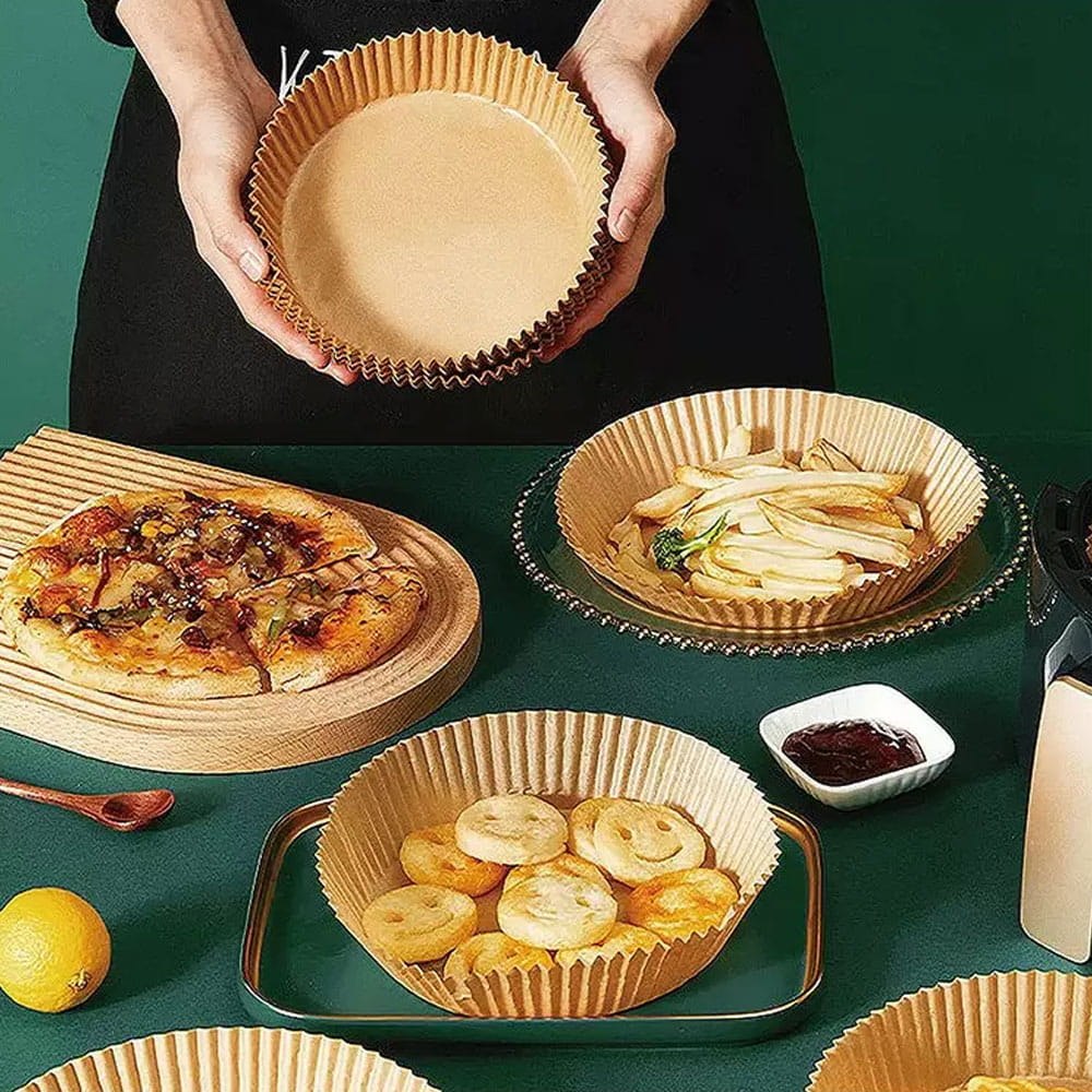Uniwersalny rozmiar. Okrągłe wkłady papierowe Klausberg KB-7780 o średnicy 20 cm pasują do większości standardowych frytkownic beztłuszczowych (3,5-5 litrów). Opakowanie zawiera 100 sztuk jednorazowych foremek z pergaminu, które skutecznie izolują jedzenie od kosza. Dzięki nim nie musisz szorować przypalonego tłuszczu. Papier jest bezpieczny dla zdrowia i nie wpływa na cyrkulację powietrza (przy odpowiednim załadowaniu).