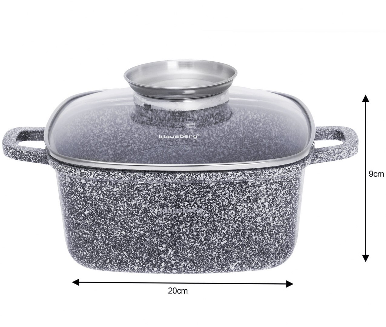 Rewolucja w Twojej kuchni. Zestaw Klausberg KB-7534 to 3 solidne garnki kwadratowe (brytfanny) o pojemnościach 2.8L, 4.4L i 6.5L. Wykonane z odlewanego aluminium, posiadają marmurową powłokę ceramiczną, która jest niezwykle twarda i zapobiega przywieraniu potraw.