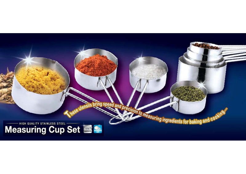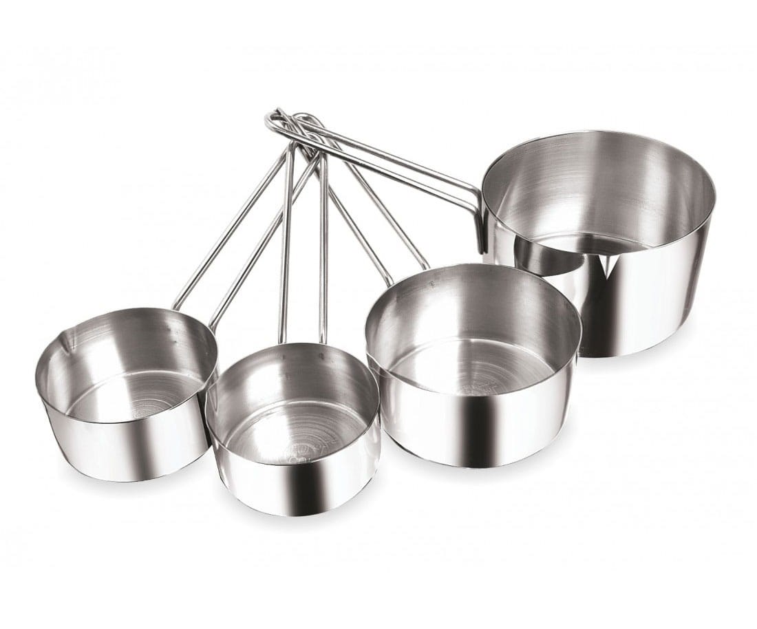 Zestaw 4 miarek ze stali nierdzewnej (60-250ml). Wygodne uchwyty i dzióbki. Można myć w zmywarce.