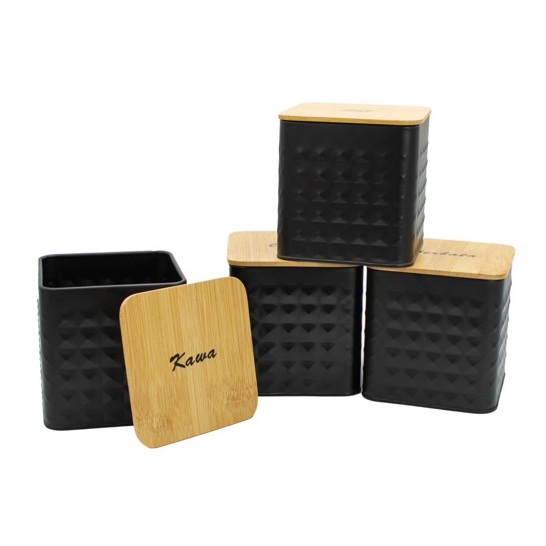 Kompletny zestaw do Twojej kuchni. Brunbeste BB-4261 to aż cztery pojemniki: na kawę, herbatę, cukier oraz sól. Wykonane z czarnej stali nierdzewnej z bambusowymi pokrywkami, prezentują się nowocześnie i stylowo.