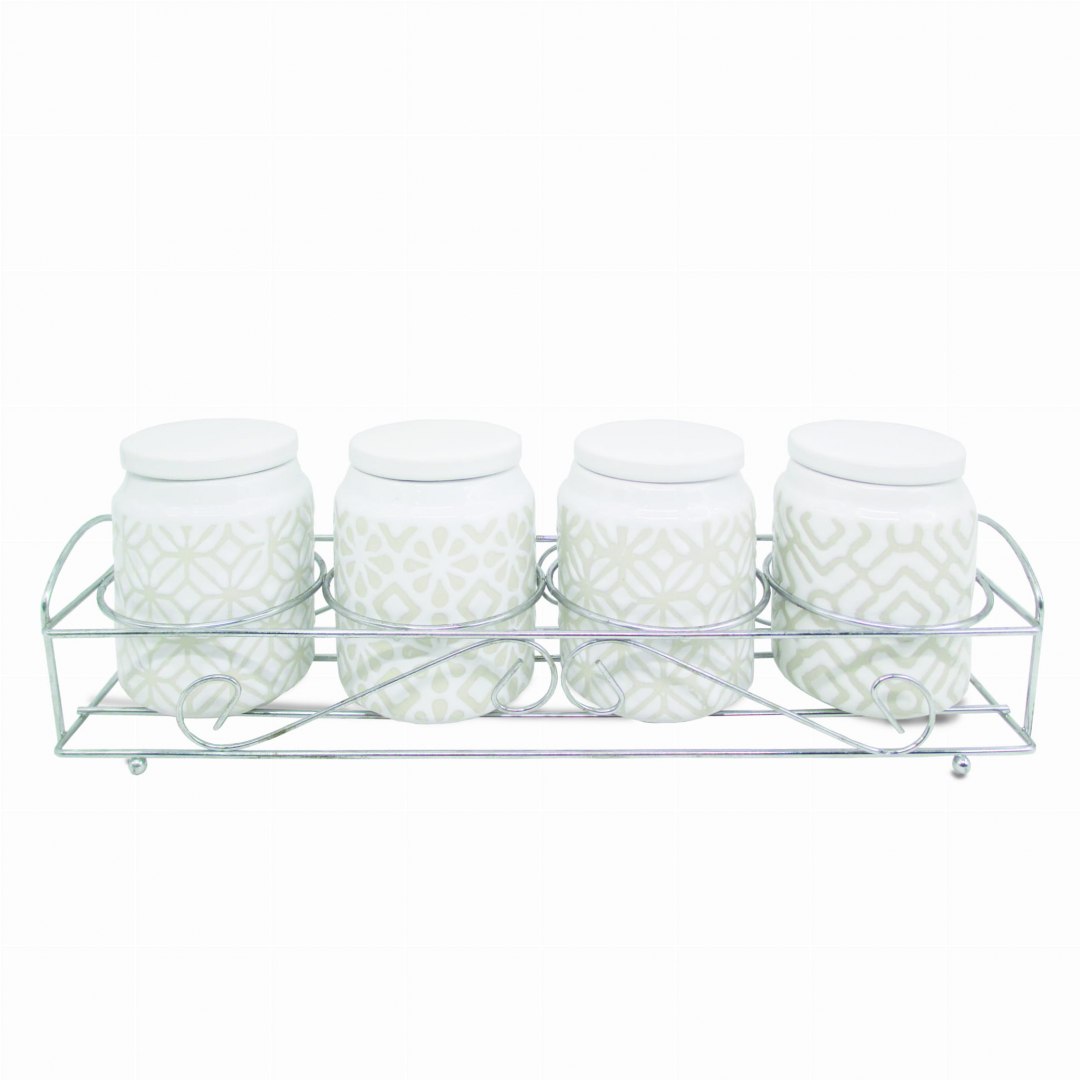 Zestaw 4 Pojemników Ceramicznych na Stojaku Maestro MR-20033-04CS