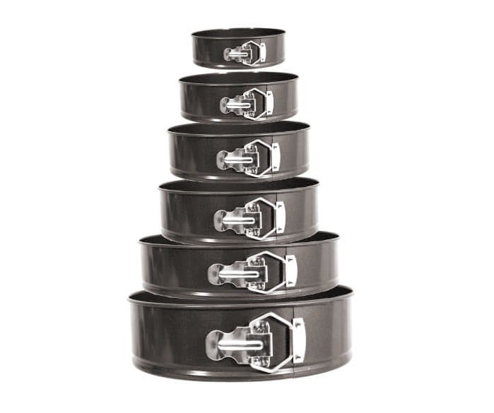Wielki zestaw 6 tortownic (od 18 do 28 cm). Stal węglowa, powłoka non-stick. Idealne do tortów piętrowych.