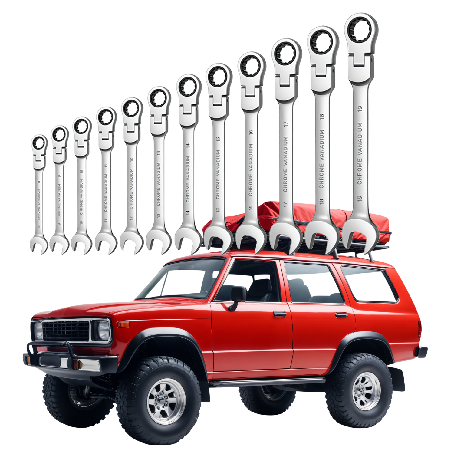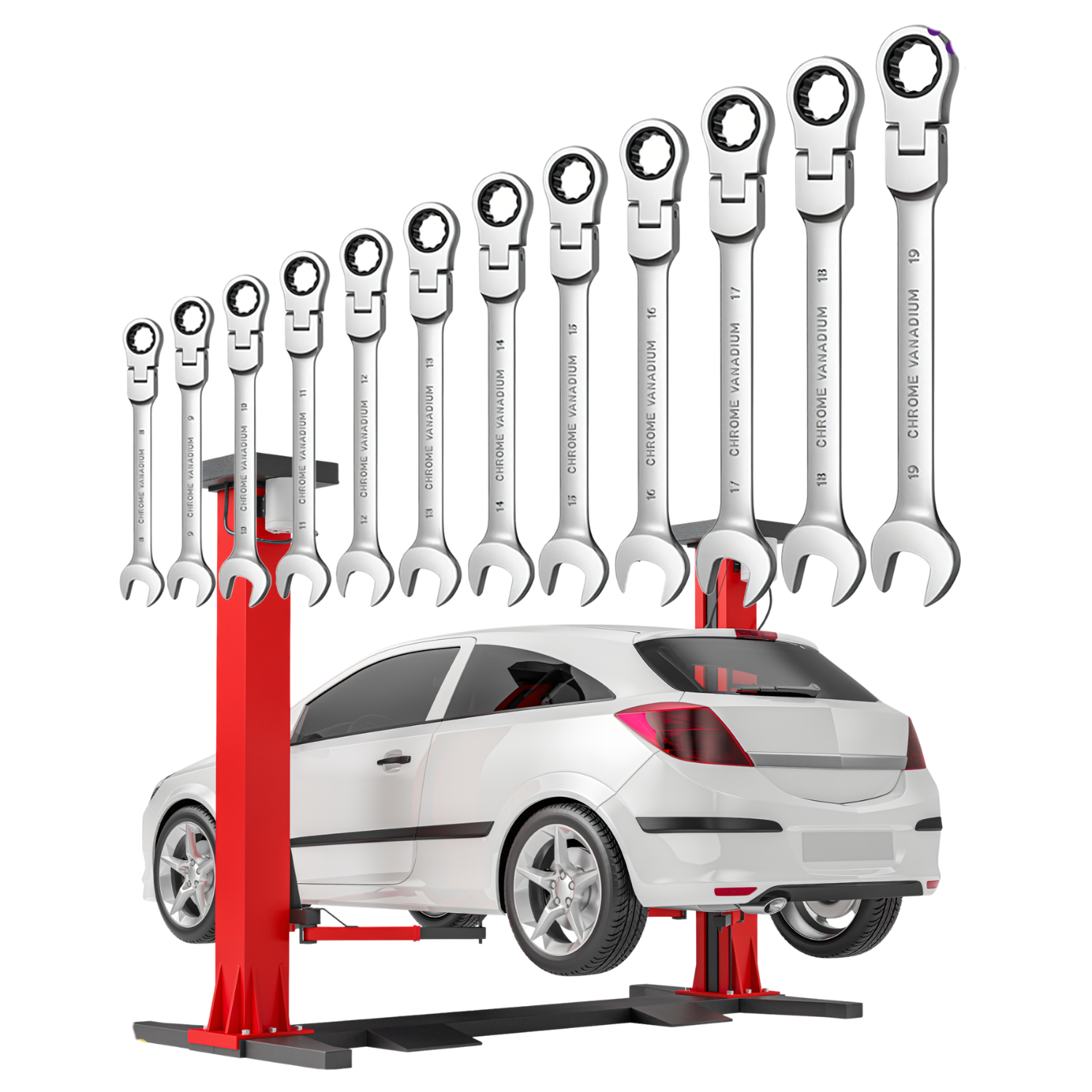 ✔️ 6 najpopularniejszych kluczy płasko-oczkowych z grzechotką: 8 mm, 10 mm, 13 mm, 15 mm, 17 mm, 19 mm.