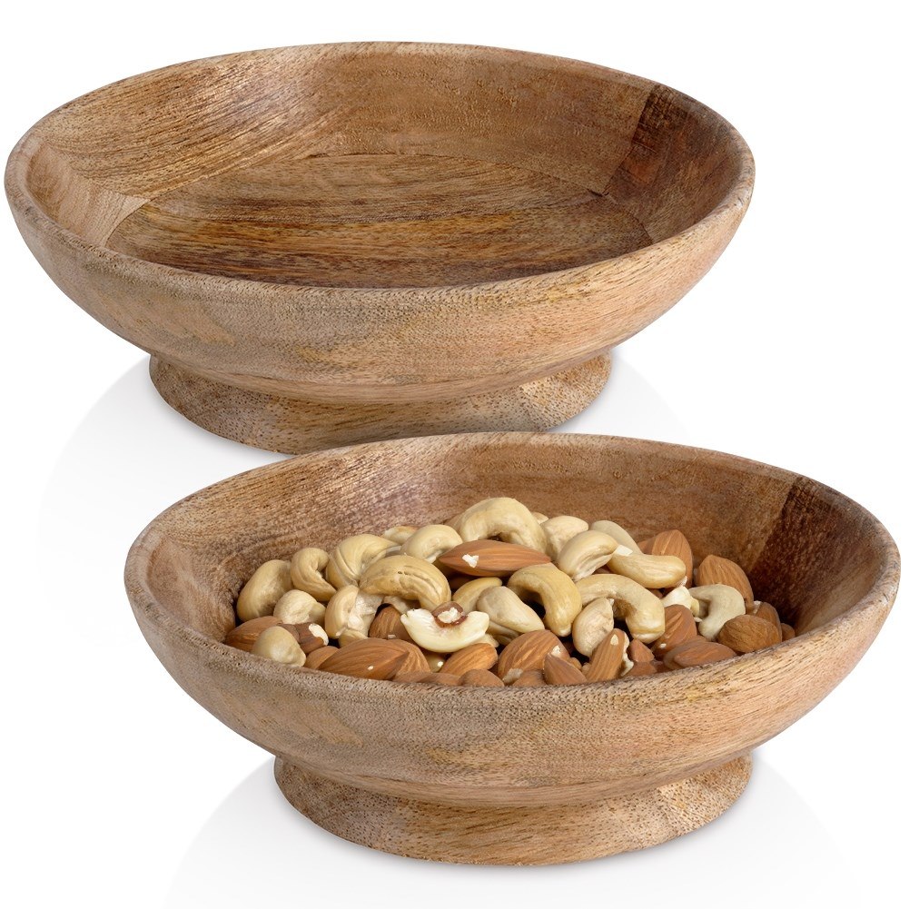 Zestaw 2 misek z drewna mango (16cm). Idealne na sałatki, przekąski i bowle. Naturalny design.