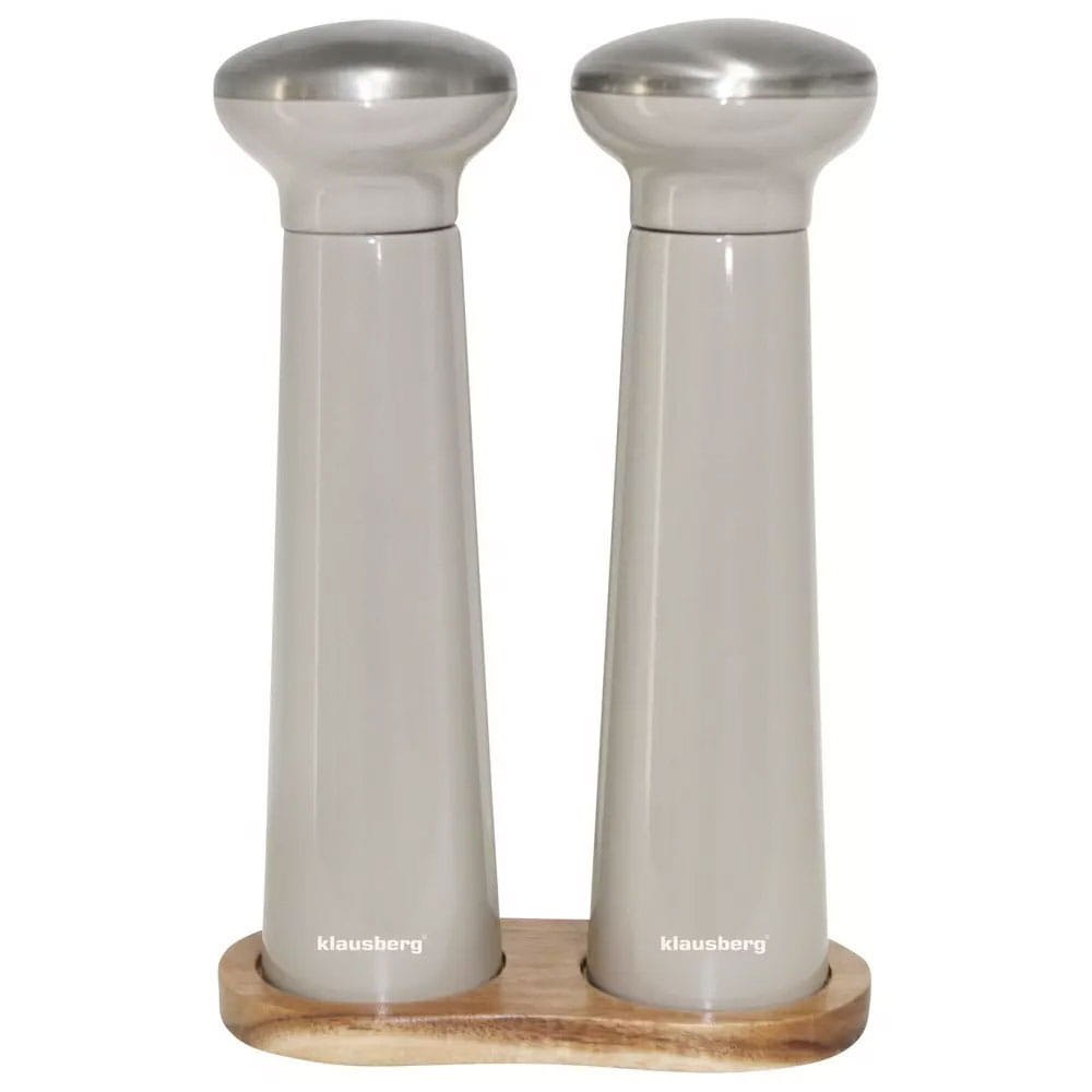 Nowoczesny design w odcieniach natury. Zestaw Klausberg KB-7595 to dwa młynki polakierowane na modny kolor jasnoszary / cappuccino. Umieszczone są na solidnej podstawce z naturalnego drewna akacjowego, co zapewnia stabilność i chroni blat.