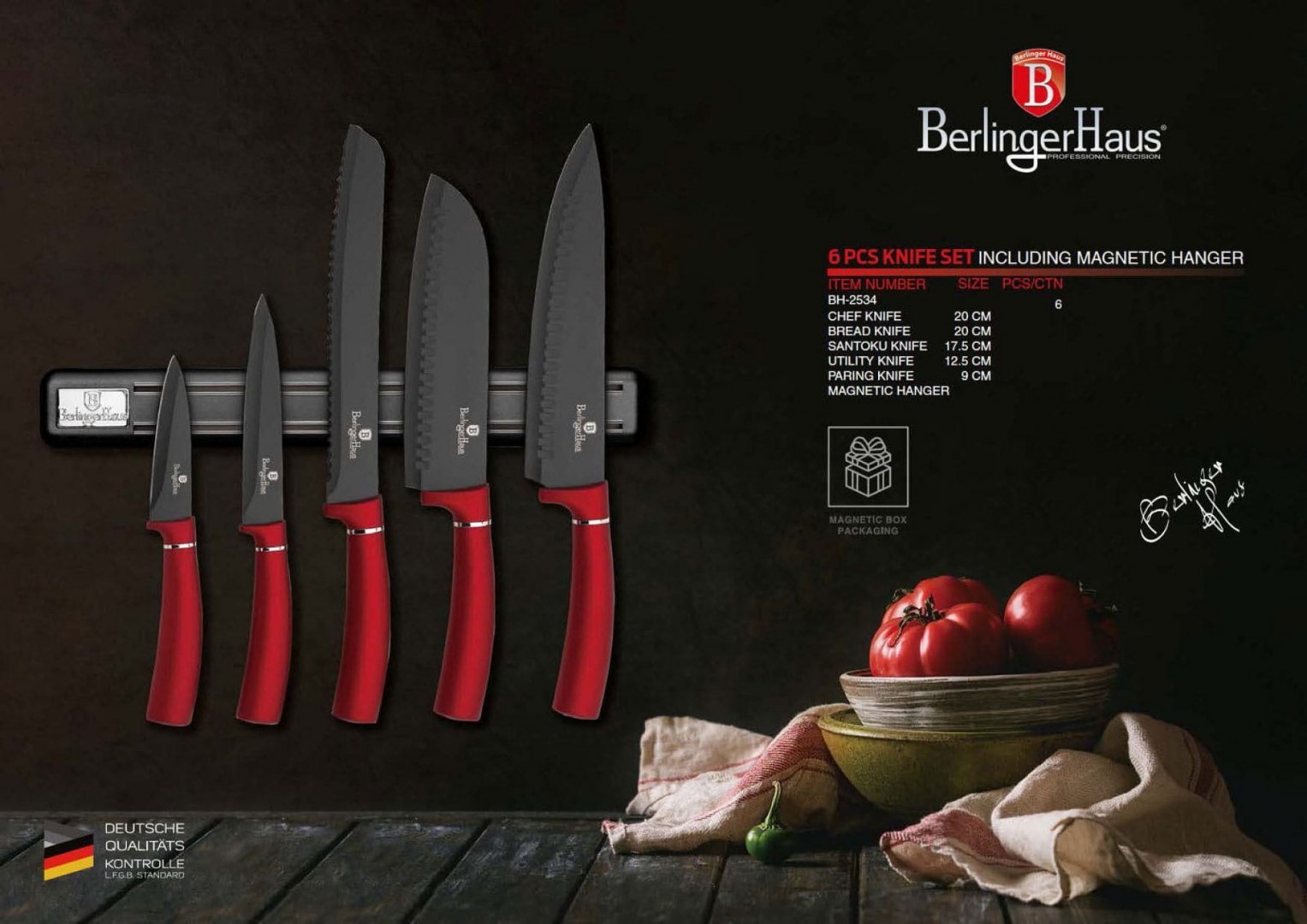 Zestaw Noży z Listwą Magnetyczną Berlinger Haus Burgundy BH-2534