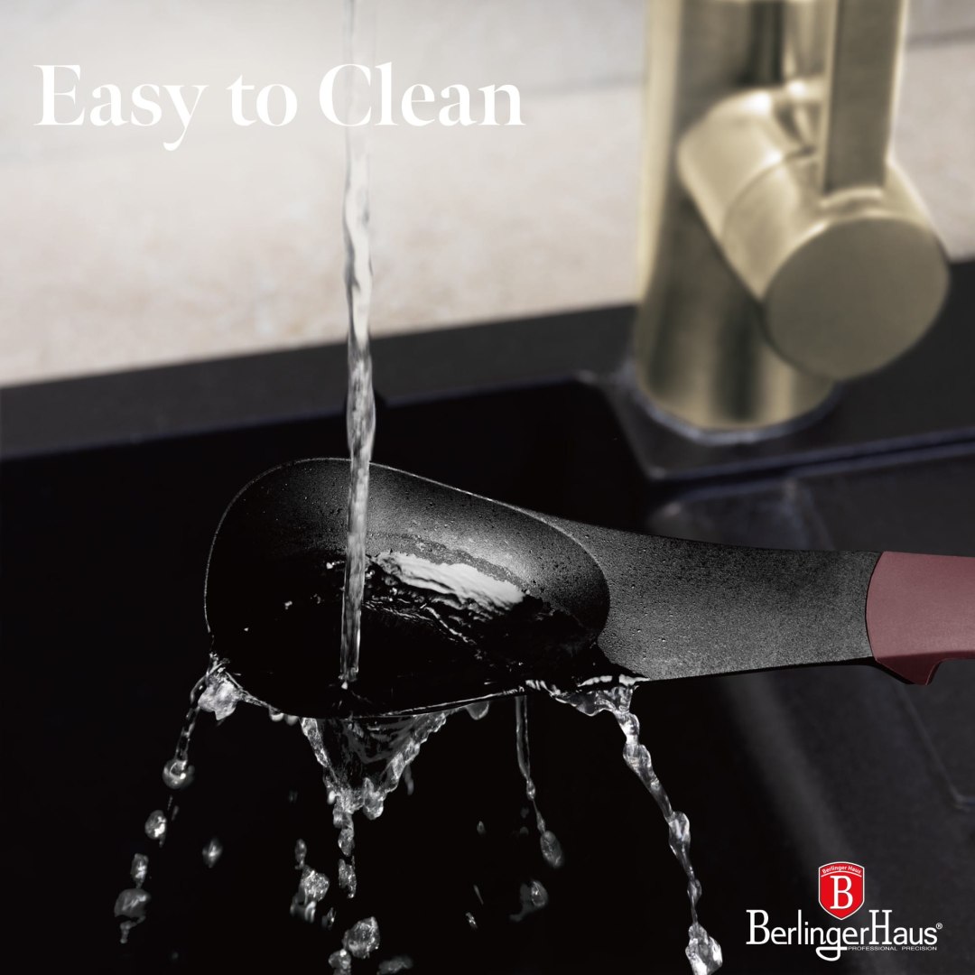 W komplecie: chochla, łyżka do spaghetti, łyżka cedzakowa, łyżka pełna oraz szczypce. Są odporne na wysokie temperatury i nie rysują powierzchni garnków. Łyżka do makaronu posiada otwór do odmierzania porcji.